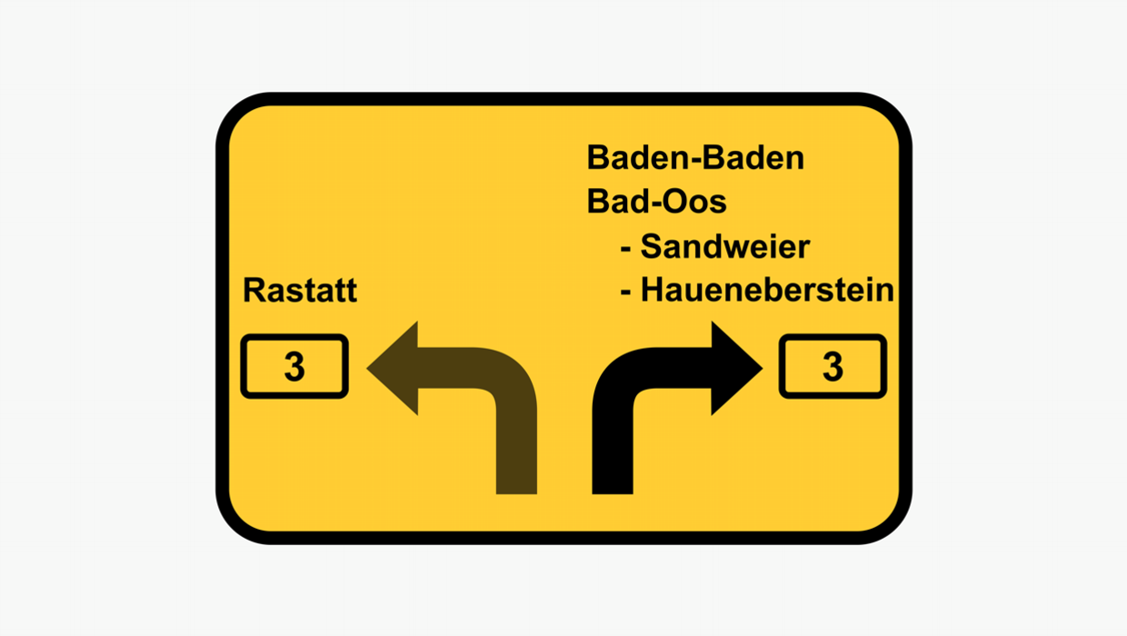 Aus Richtung: Karlsruhe-Basel: in Richtung "Baden-Baden"rechts abbiegen auf die B3